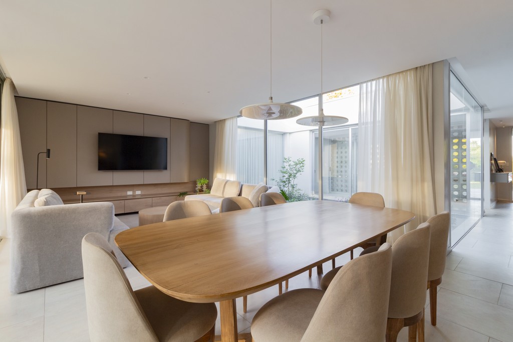 En la Casa de las Flores adoptamos la curva como idea fuerza y la llevamos a su máxima expresión. Arquitectura e interiorismo manifiestan este concepto de una manera integral, tanto en lo espacial como en lo material. No es solo una elección estética, sino la columna vertebral que define la experiencia del usuario, las funciones y la relación de la edificación con su entorno. Casa de las Flores resume nuestra visión de la arquitectura como una práctica profundamente artística y funcional. Fue una obra compleja, que implicó dos años de trabajo y un equipo comprometido, cuyo resultado deja en evidencia el carácter que nos gusta imprimirle a nuestro diseño.